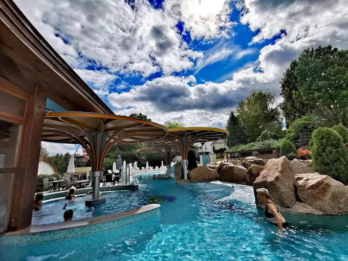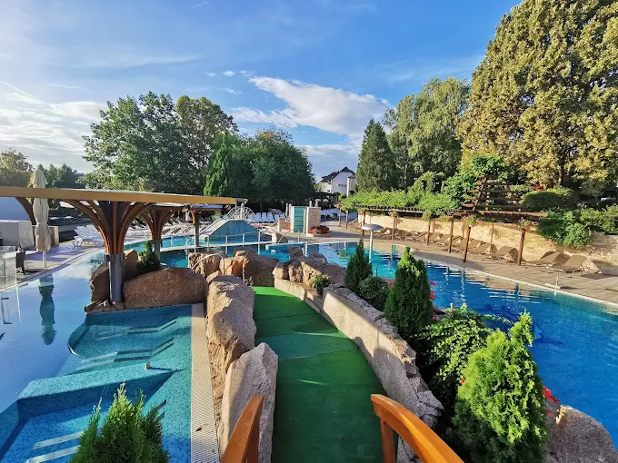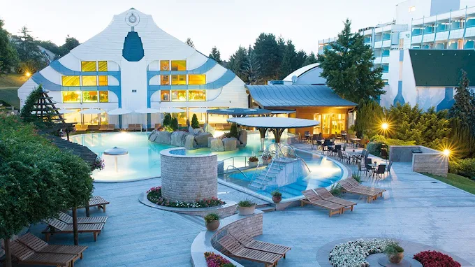 The highlight is the large thermal water pool, supplied directly from the Lake Hévíz spring, famous for its healing properties. Guests can choose from traditional Hévíz therapy, relaxing massages, beauty care, and comprehensive wellness programs for every season. With its elegant ambiance, lush landscaped gardens, and healthy gourmet dining, Hotel Carbona is ideal for relaxation, rejuvenation, and health cures.