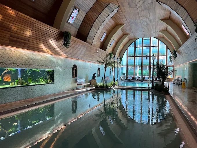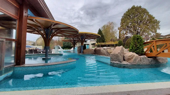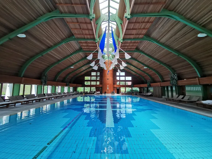 Relax and unwind at Pesterzsébet Thermal Bath in Budapest! Enjoy thermal pools, saunas, a wellness area, and swimming under open skies at this renovated family-friendly spa in District XX.