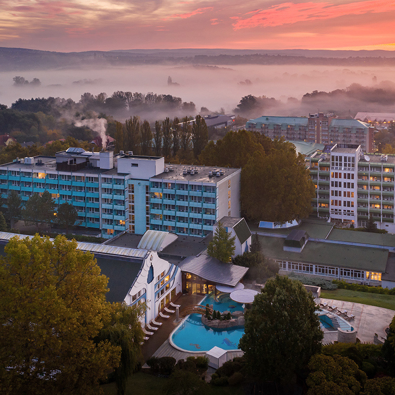 Hotel Europa Fit Hévíz offers a renowned four-star wellness and medical spa in the tranquil heart of Hévíz, just a short walk from Europe’s largest natural thermal lake. The spa facilities feature indoor and outdoor pools, an adventure pool, jacuzzis, a sauna world (Finnish sauna, infra sauna, steam cabin, tepidarium, salt cave), and beauty as well as medical treatment rooms.