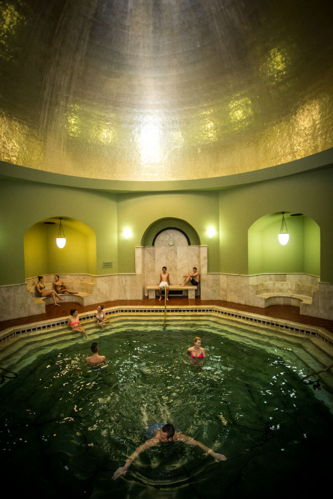 The bath houses six pools, each with varying temperatures and historical significance:The thermal waters are rich in radon, known for their therapeutic benefits, including pain and inflammation reduction, and hypertension alleviation.