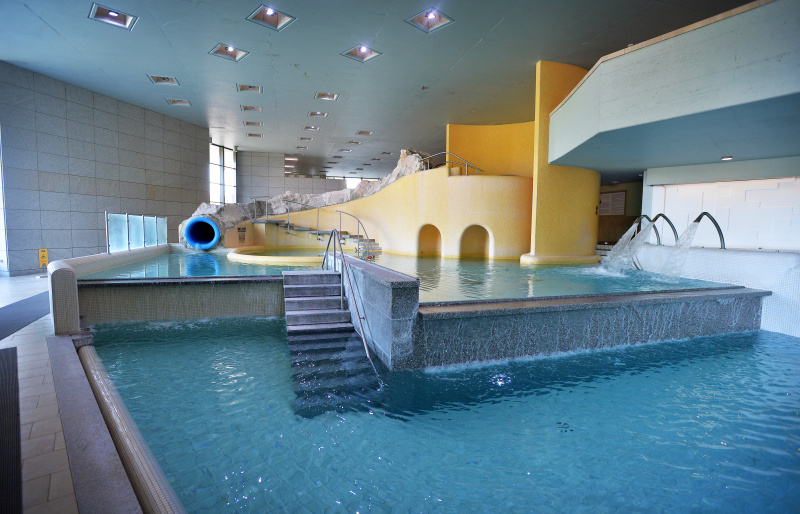 Relax and unwind at Pesterzsébet Thermal Bath in Budapest! Enjoy thermal pools, saunas, a wellness area, and swimming under open skies at this renovated family-friendly spa in District XX.