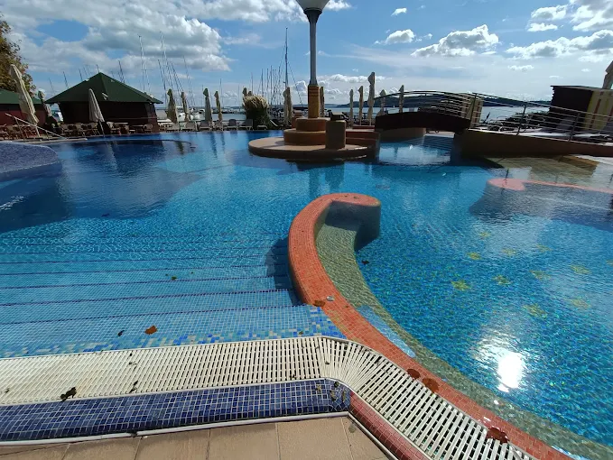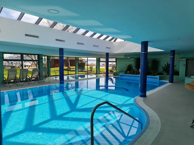 Hotel Flamingó Balatonfüred is a popular wellness resort directly on the shores of Lake Balaton, perfect for families, couples, or business travelers seeking relaxation and recreation. The hotel’s wellness centre offers indoor and outdoor pools, jacuzzis, Finnish and infra saunas, steam room, salt chamber, and an array of therapeutic treatments and massages. Guests enjoy private access to the hotel’s lakeside beach and sun terrace, as well as water sports and a kids’ play area.